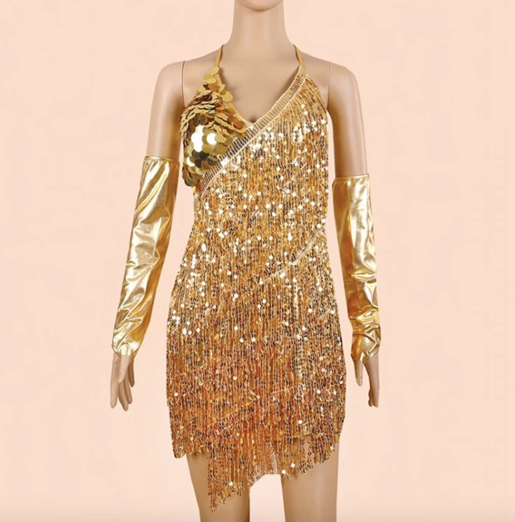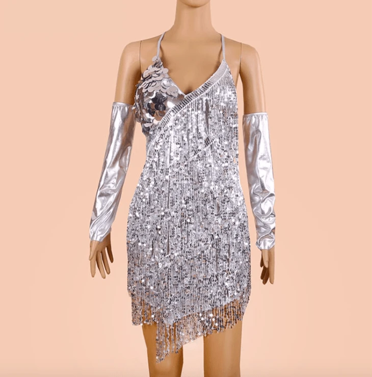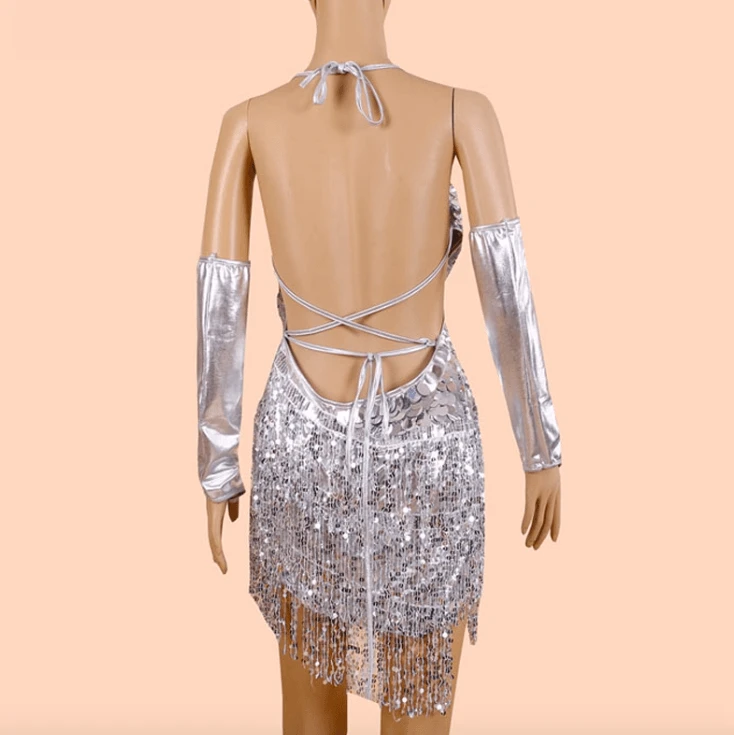 - Produktdetails: Einzigartiges Glitzerkleid aus Pailletten und mit Arm-Handschuhen dazu. Festival und Party Outfit.