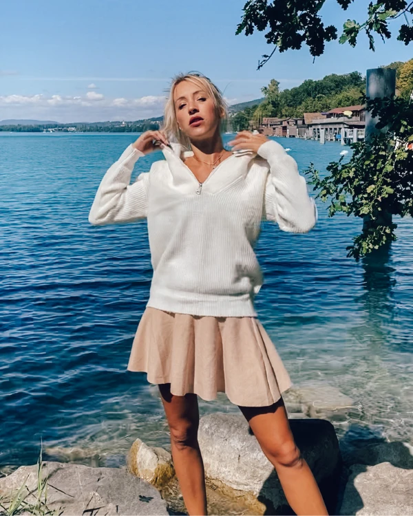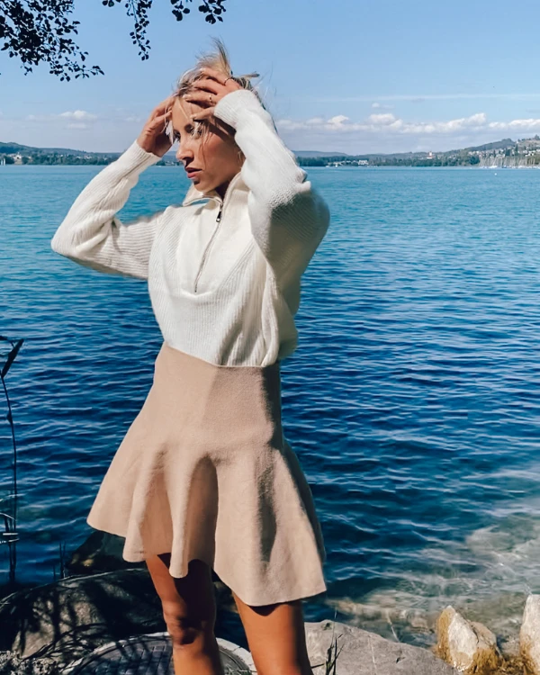Produktdetails: Knitted Skater Rock. Super bequemer stretch Rock mit hohem Bund. Loungewear Rock.