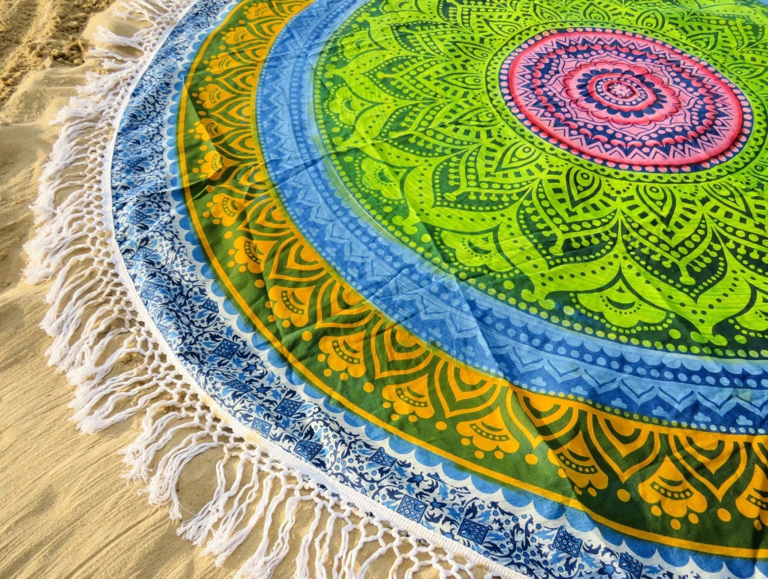 - Produktdetails: Rundes Strandtuch aus mitteldickem Baumwolle Stoff, gute Qualität! Der absolute Blickfang! Nie mehr der Sonne hinterher drehen! Handwäsche!